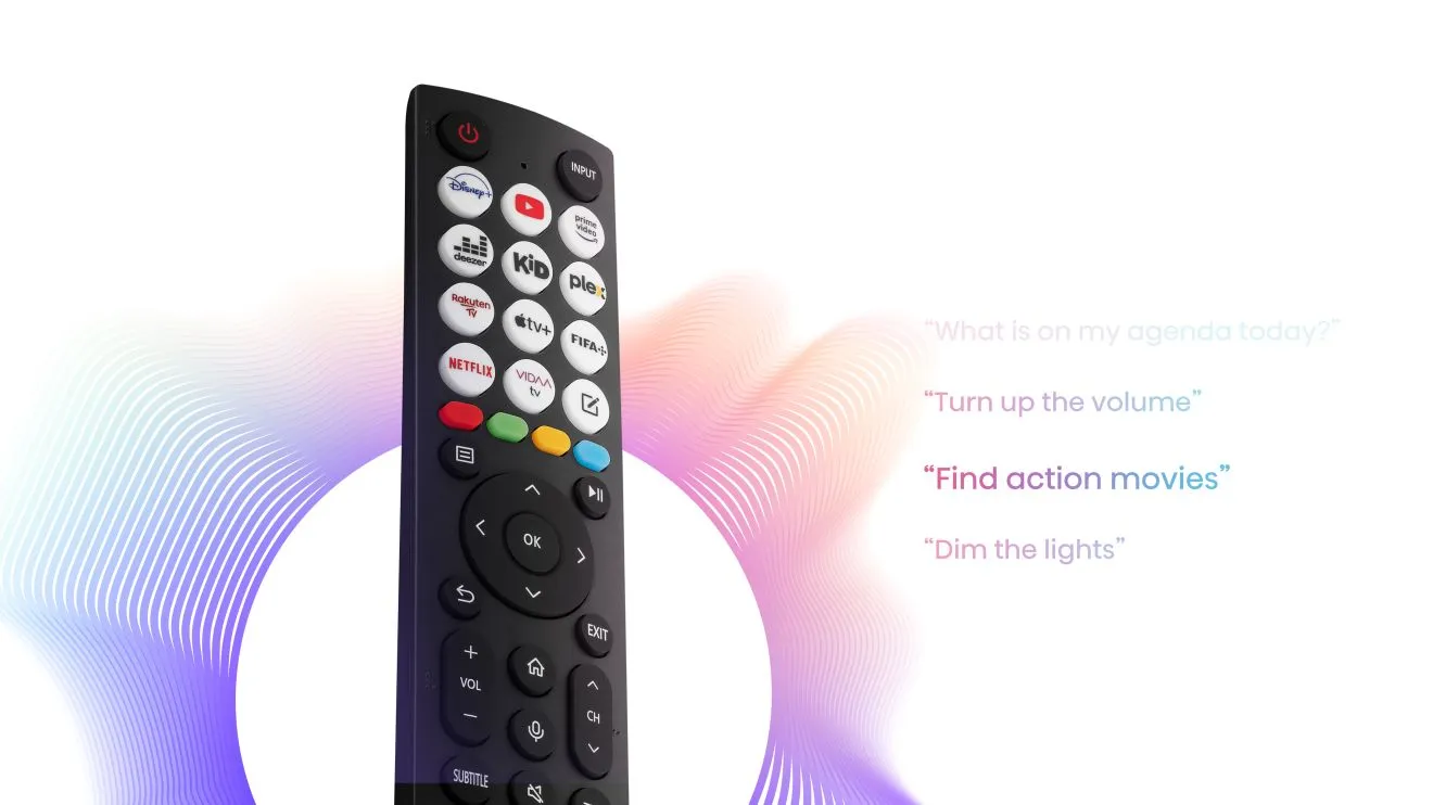 Z Hisense Voice Remote, możesz sterować telewizorem także za pomocą komend głosowych. Wystarczy przytrzymać jeden przycisk i możesz pauzować, wznawiać, zatrzymywać, przewijać, nawigować pomiędzy treściami, a nawet korzystać z wirtualnych asystentów. Wszystko z poziomu pilota.