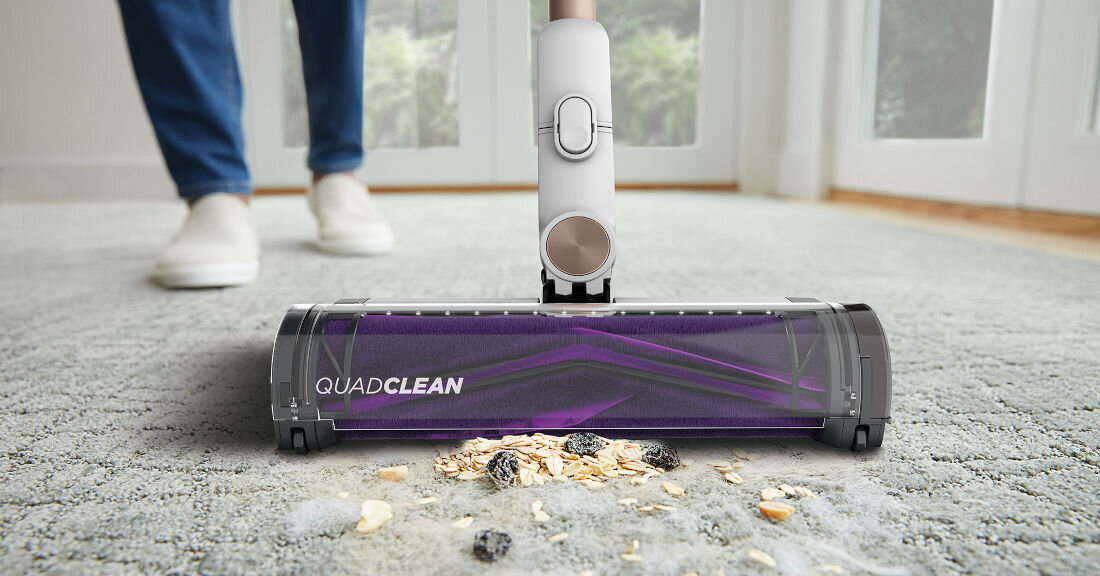 Dokładnie czyść zarówno dywany, jak i twarde podłogi dzięki rolce szczotki QuadClean, która skutecznie radzi sobie z różnymi rodzajami powierzchni bez potrzeby jej wymiany. Ta innowacyjna szczotka ma specjalną konstrukcję, która obejmuje: