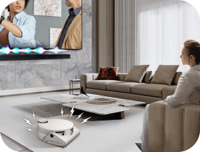 Dźwięk zoptymalizowany tak, by idealnie wypełnić Twoją przestrzeń. Ciesz się doskonałym dźwiękiem w każdym wnętrzu. Funkcja Dźwięku Dopasowanego do Przestrzeni sprawia, że soundbar automatycznie rozpoznaje otoczenie, a następnie dostosowuje zasięg i ton dźwięku, tak by perfekcyjnie dopasować się do miejsca, w którym go ustawisz.