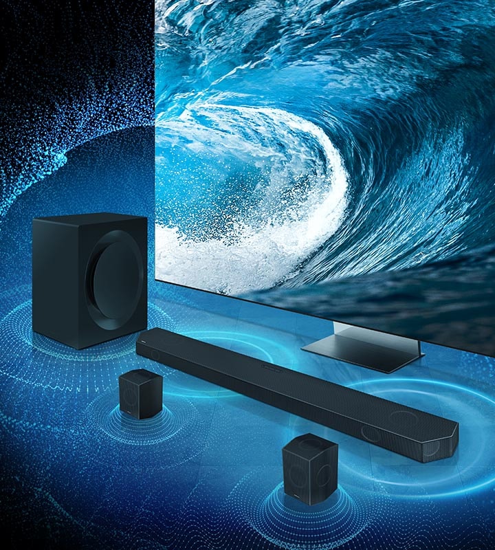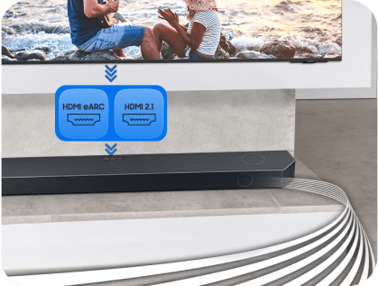 Perfekcyjna synchronizacja brzmienia, rewelacyjne odwzorowanie dźwięku i precyzyjne umiejscowienie go w przestrzeni dzięki Dolby Atmos. Połącz bezprzewodowo swój soundbar z telewizorem Samsung i ciesz się fantastycznie odwzorowanym dźwiękiem bez względu na to, co aktualnie oglądasz.