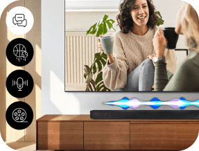 Pozwól, aby soundbar za pomocą funkcji Aktywny Wzmacniacz Głosu sprawił, że każde słowo wypowiedziane na ekranie stanie się doskonale zrozumiałe. Nie musisz już samodzielnie zwiększać głośności, aby usłyszeć najważniejsze dialogi.